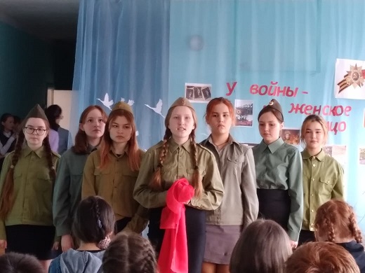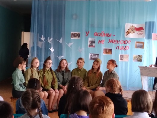 Обучающиеся рассказали о бессмертном подвиге женщины на войне. В ряды защитников Родины встали около 500 тысяч девушек, из них 200 тысяч комсомолок. 70% мобилизованных девушек служили в действующей армии. В славной летописи Великой Отечественной войны много женских имен, отмеченных боевыми наградами Родины. Двести тысяч награждены боевыми орденами, 90 стали Героями Советского Союза. Свыше двухсот женщин были удостоены высшего знака солдатской доблести – ордена Славы, который невозможно получить ни за какие заслуги, кроме подвига на поле боя. Для учащихся в этот день прозвучали стихи Юлии Друниной, Михаила Исаковского, Муссы Джалиля. Ребята послушали отрывки из книги Светланы Алексиевич «У войны не женское лицо».