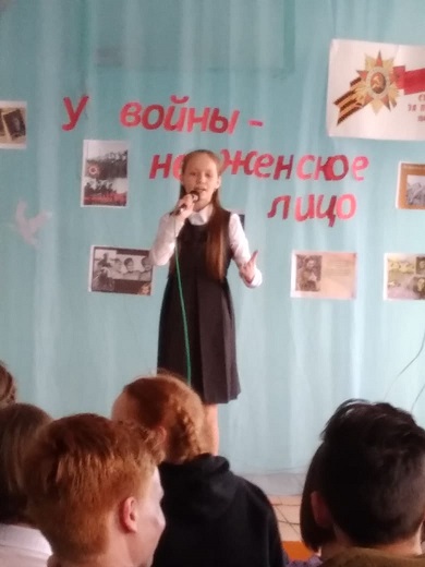 В преддверии праздника Великой Победы и в рамках декады русского языка и литературы учителем Зидымышевой Л.А. была проведена литературно-музыкальная композиция «У войны - не женское лицо» для учащихся 5 — 10 классов.