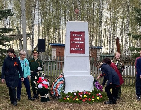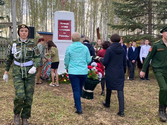 Все присутствующие почтили память погибших минутой молчания. В дань уважения к погибшим к обелиску были возложены мемориальные венки, цветы.