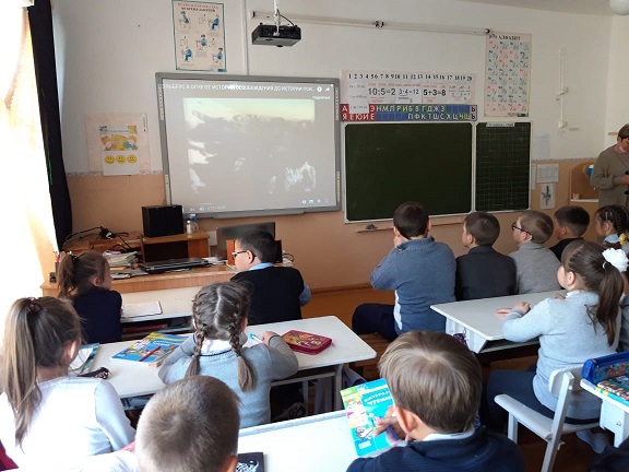 12 мая 2021 г. в 1 — 4 классах учителя начальных классов провели Урок мужества "Эльбрус в огне, от истории освобождения до истории поиска".
