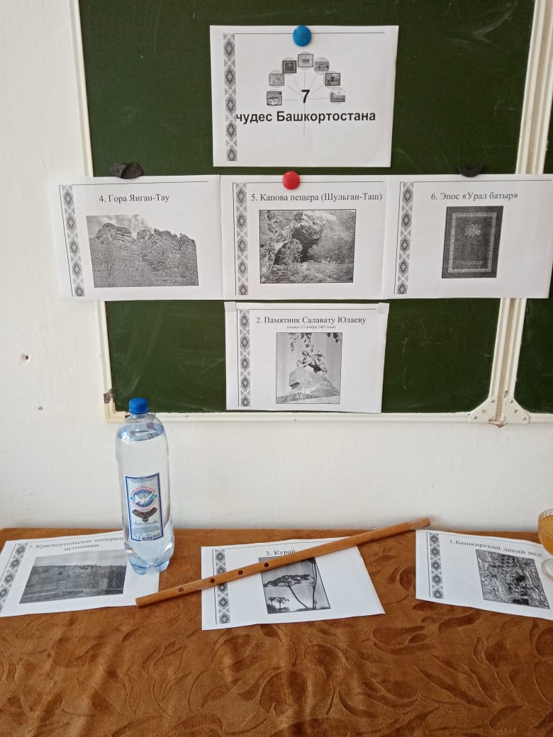 8 октября 2021 г. в 8 классе состоялось тематическое мероприятие «Семь чудес Башкортостана», посвященное Дню Республики Башкортостан. Оно было организовано учителей Зидымышевой Л.А.