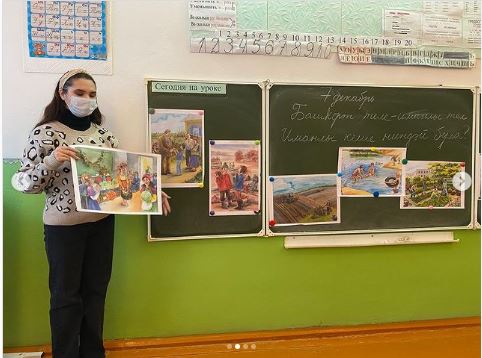 Дәрес аҙағында һүрәттәр төшөрөп, мәктәп стендына элделәр. Дәресте Ә.Ф. Әүхәҙиева ойошторҙо.