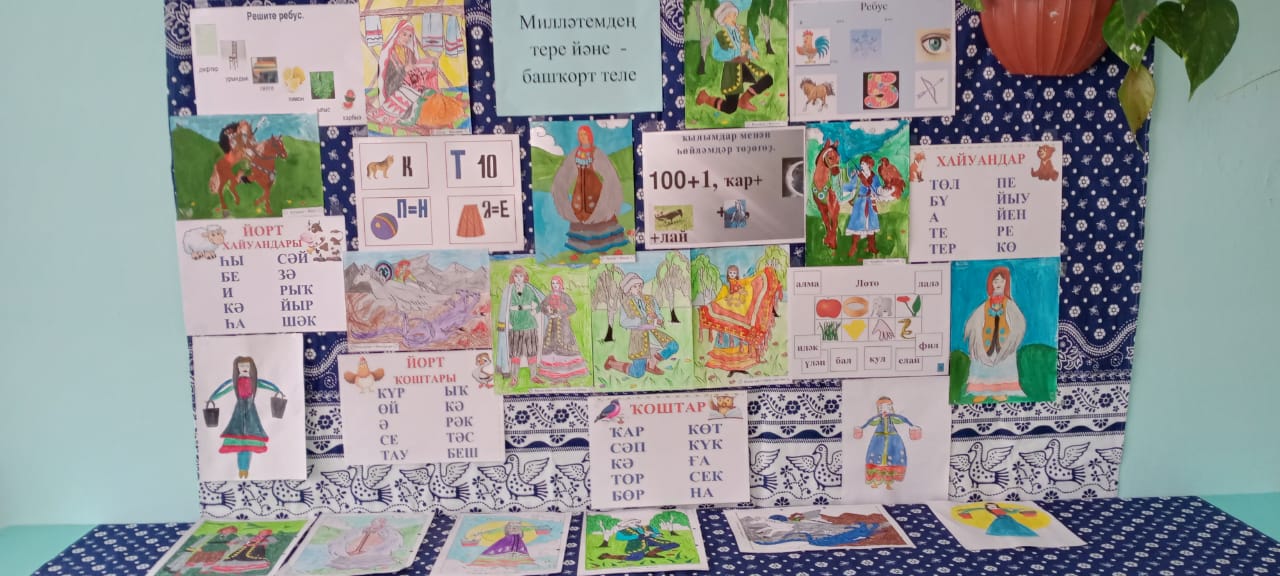 9 декабря 2021 г. учителем начальных классов Воробьевой Т.И. в фойе первого этажа школы была организована выставка рисунков, ребусов, шарад ""Милләтемдең тере йәне - башҡорт теле". Выставка посвящена Дню башкирского языка.
