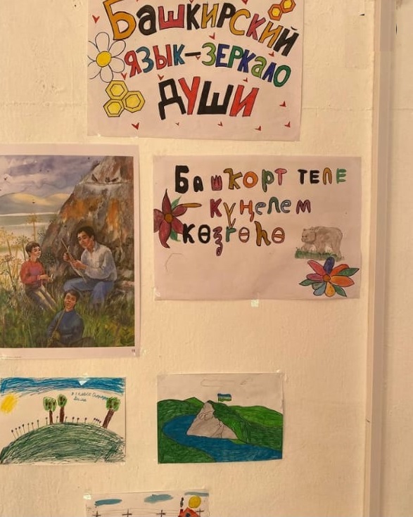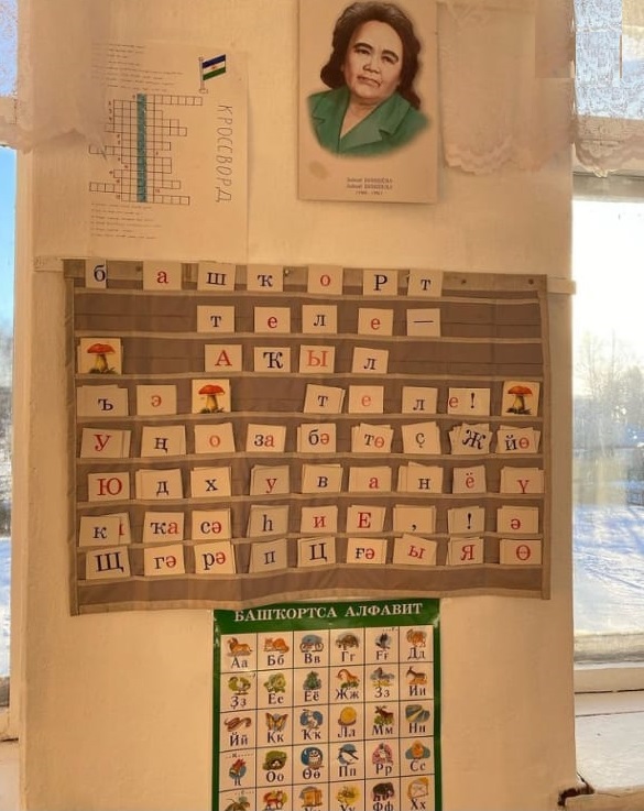 В фойе 2 этажа школы учащимися старших классов и учителем башкирского языка Авхадиевой А.Ф. 8 декабря 2021 г. оформлена экспозиция «Башкирский язык – зеркало души». #деньбашкирскогоязыка2021марафон